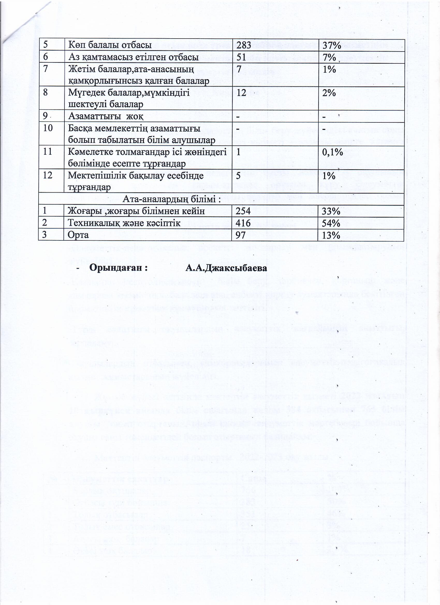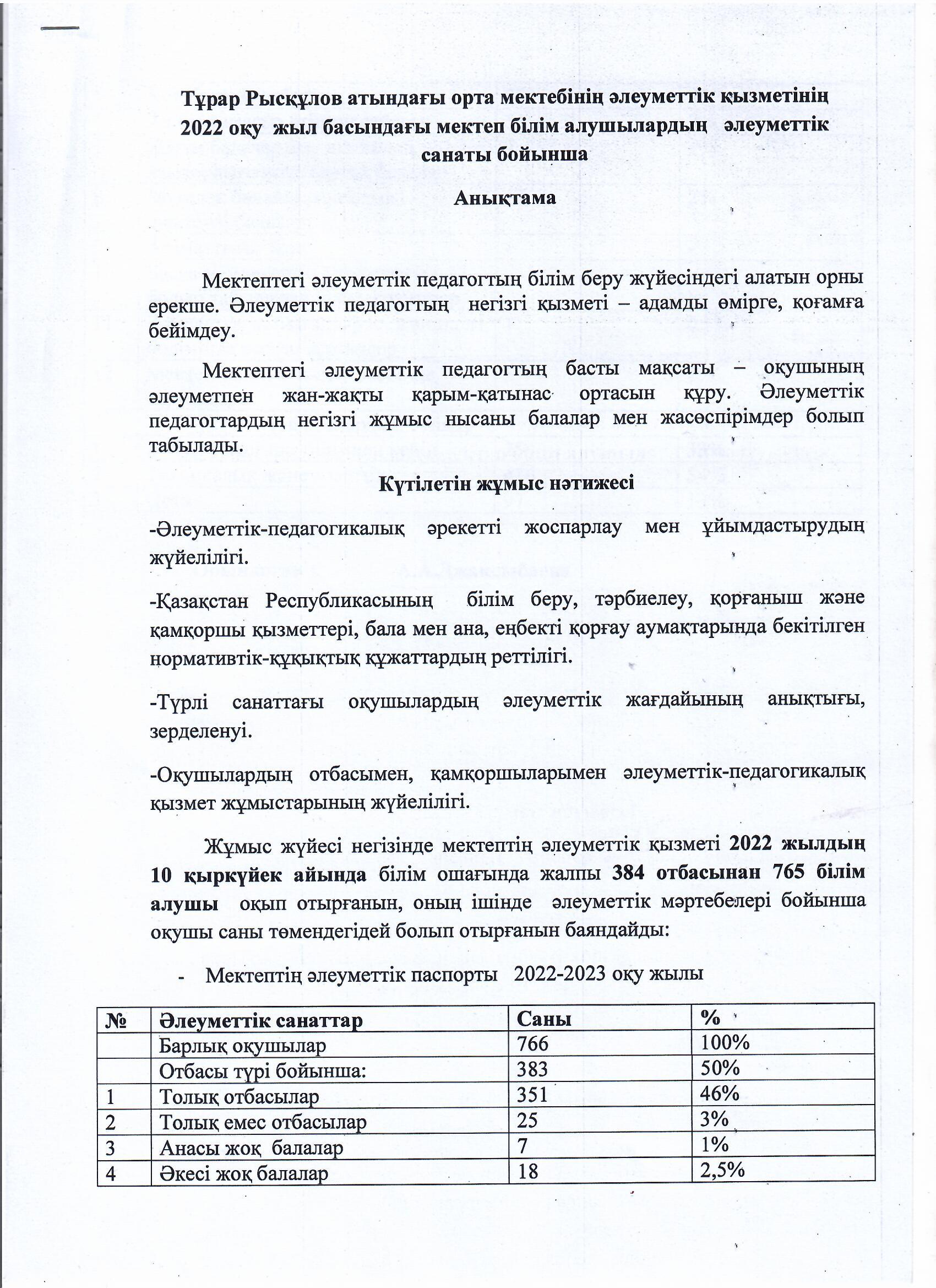 Әлеуметтік санаты бойынша анықтама » Тұрара Рысқұлов атындағы орта мектеп
