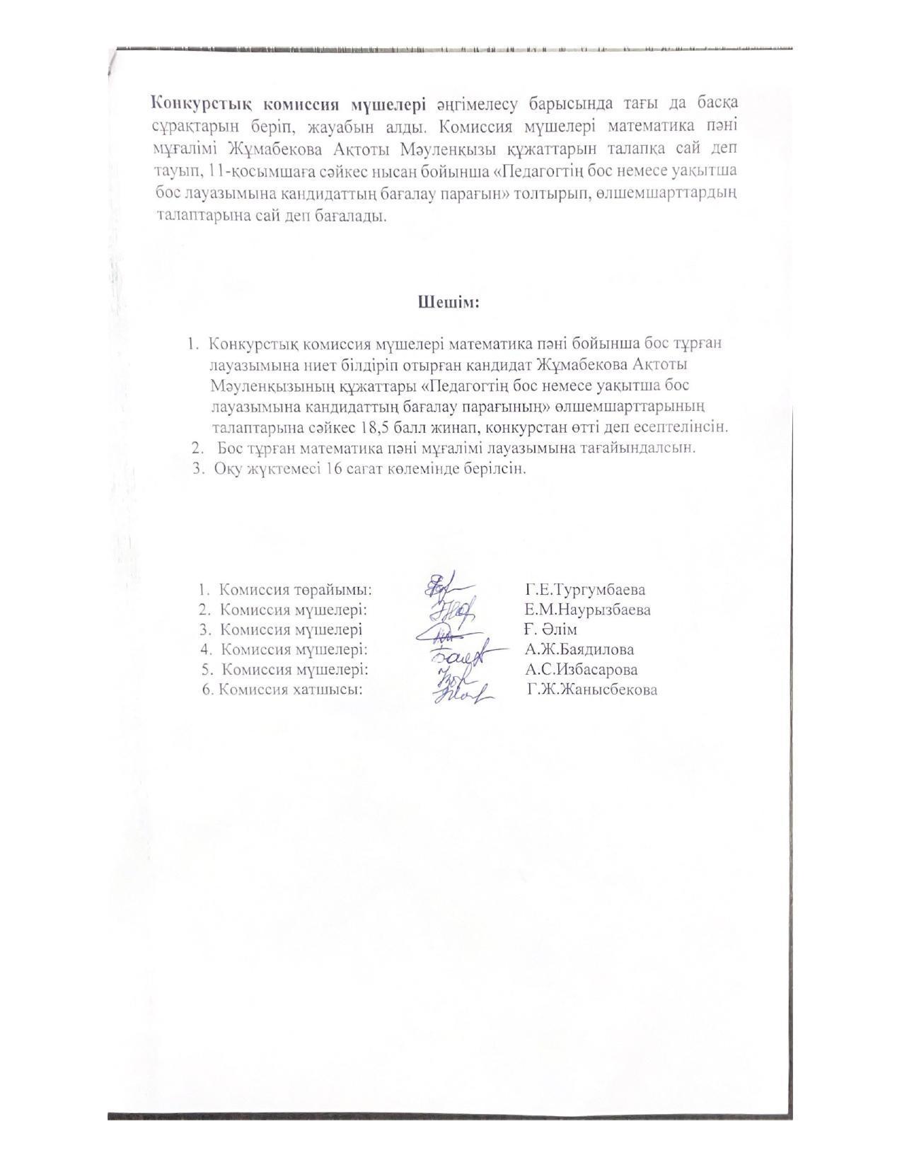 - Математика пәні лауазымы (қазақ сыныбы) Жұмабекова Ақтоты