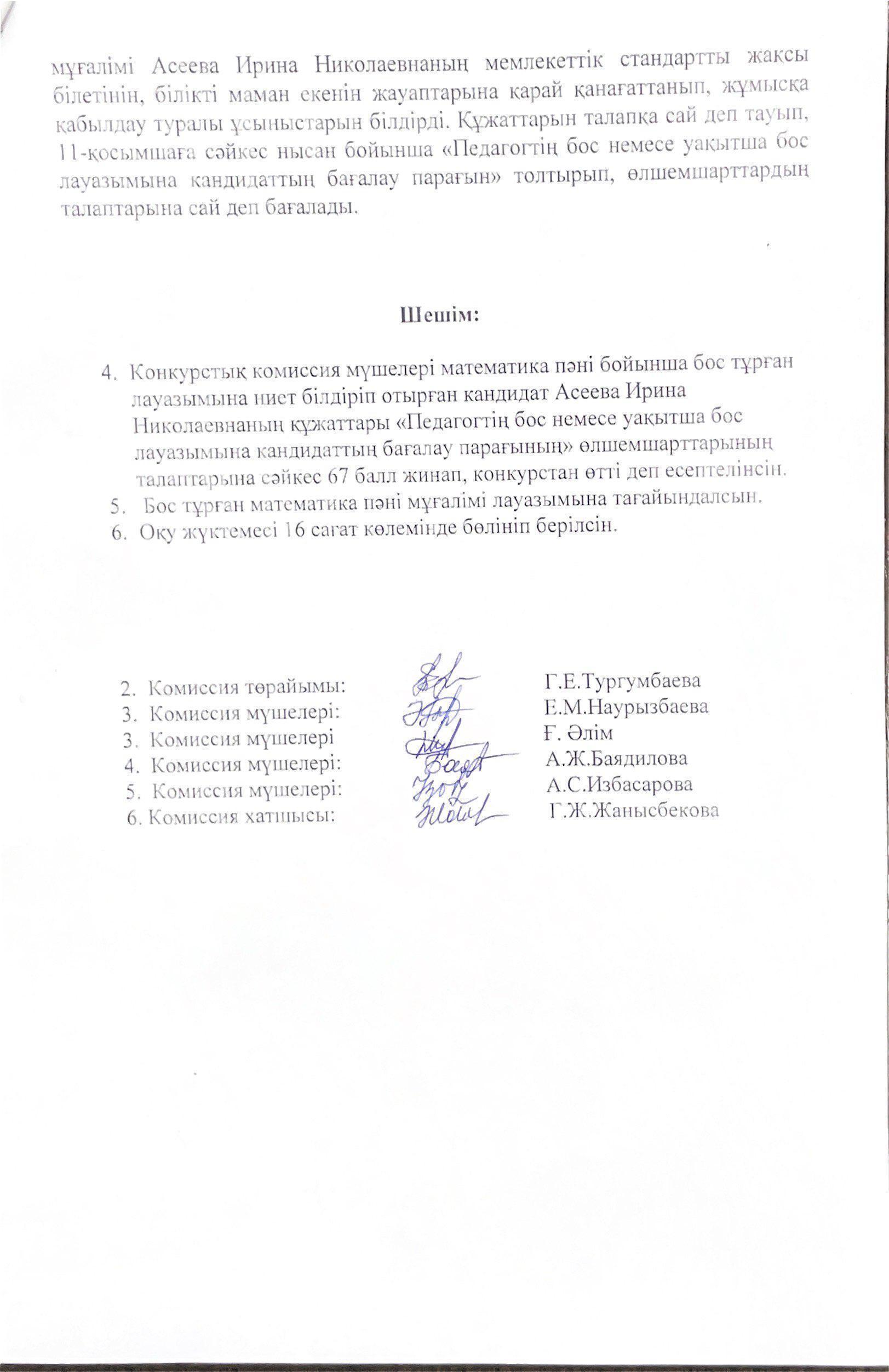 Жарияланған бос орындарға өтініш білдірген үміткерлер конкурстан жинаған ұпайы негізінде пән мұғалімдері, психолог маманы болып қабылдануға ұсынылды.