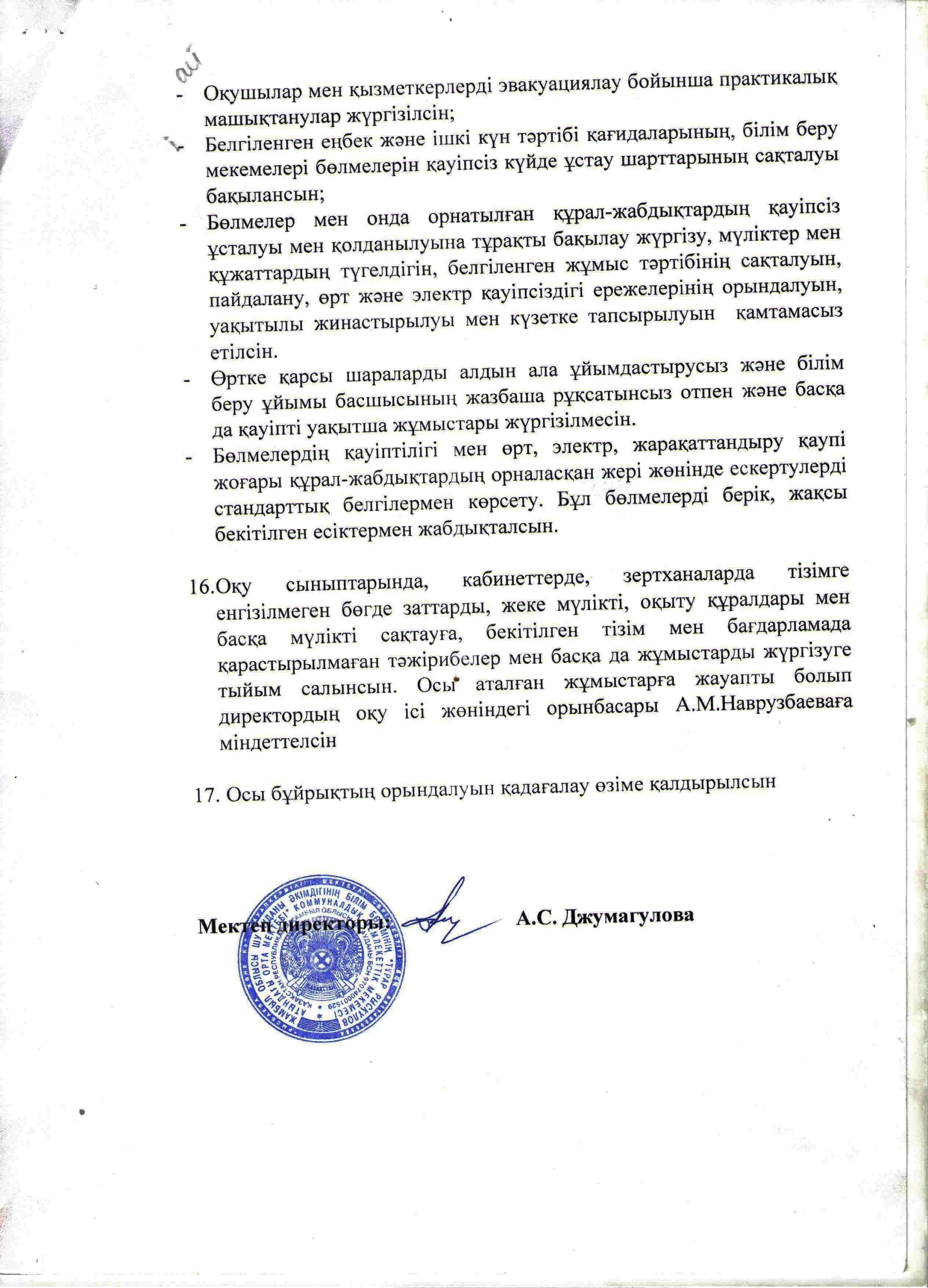 Мектепте оқушылардың қауіпсіздігін қамтамасыз ету туралы » Тұрара Рысқұлов атындағы орта мектеп