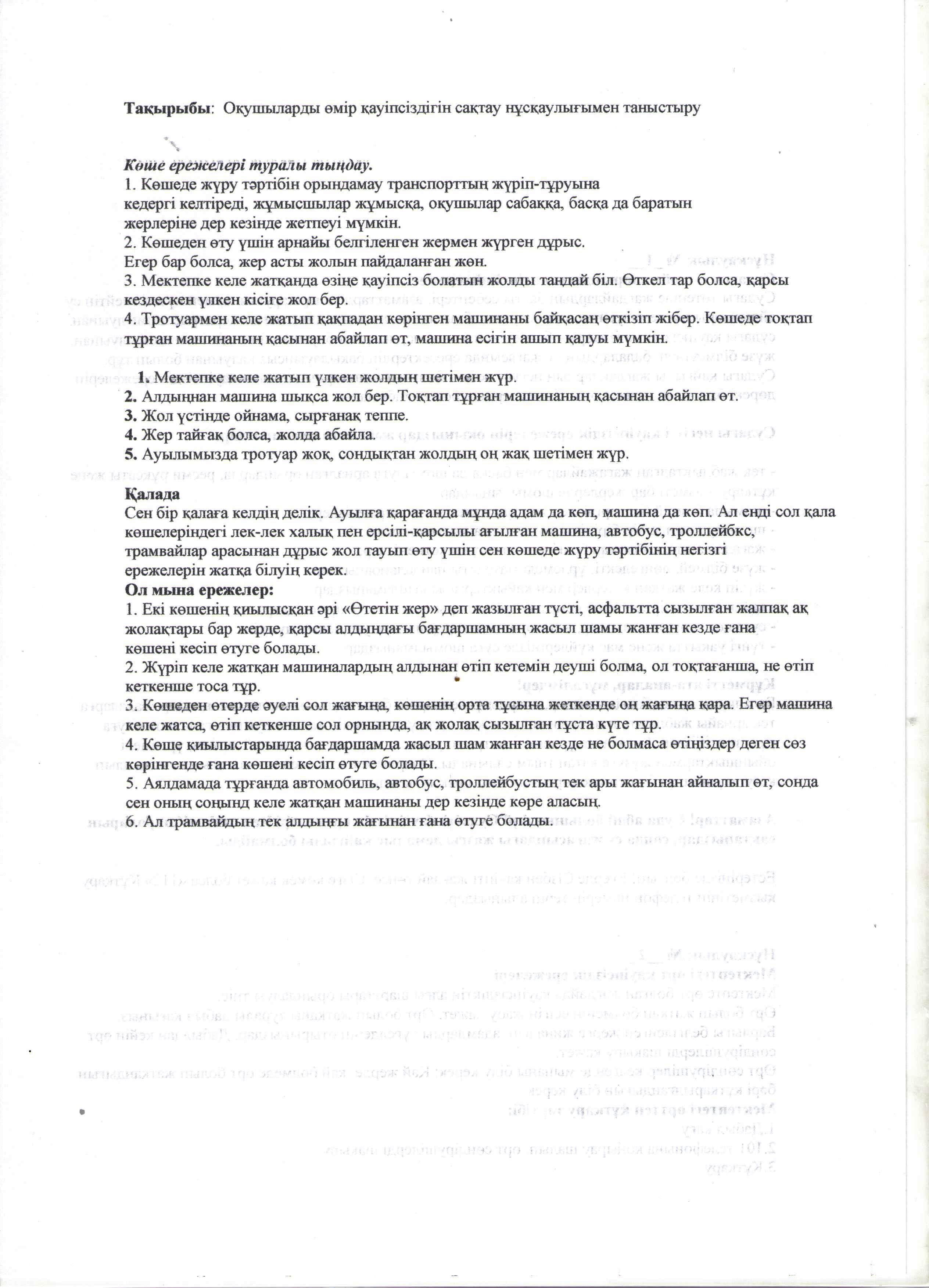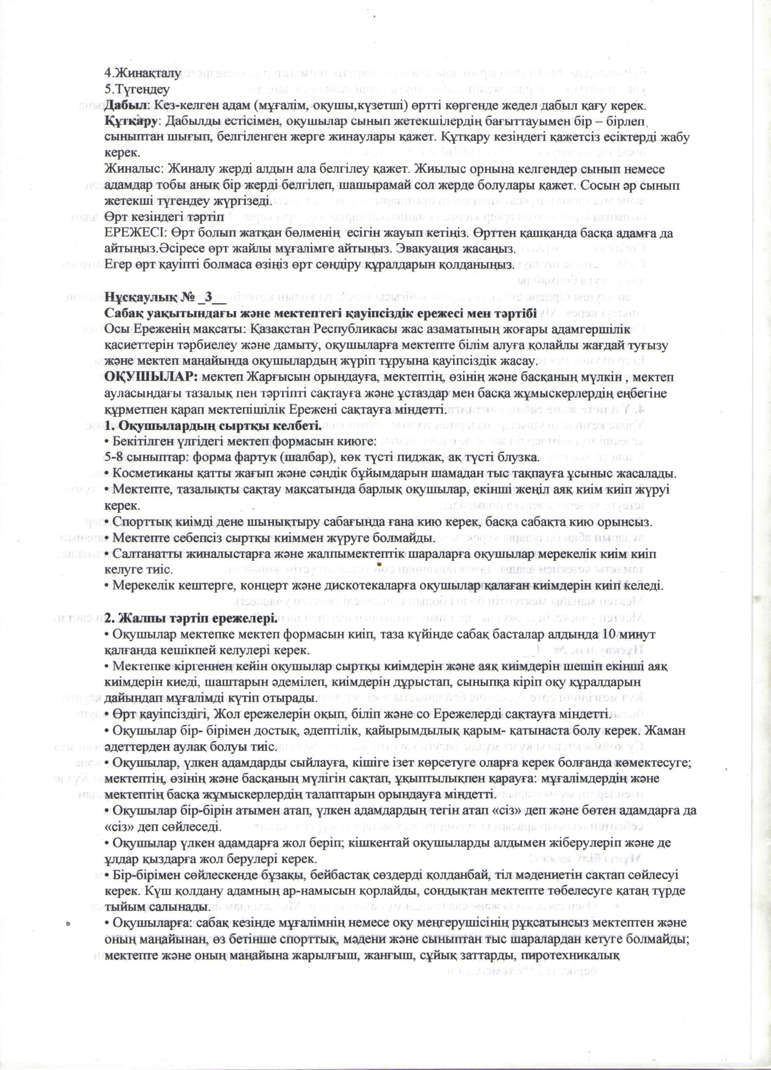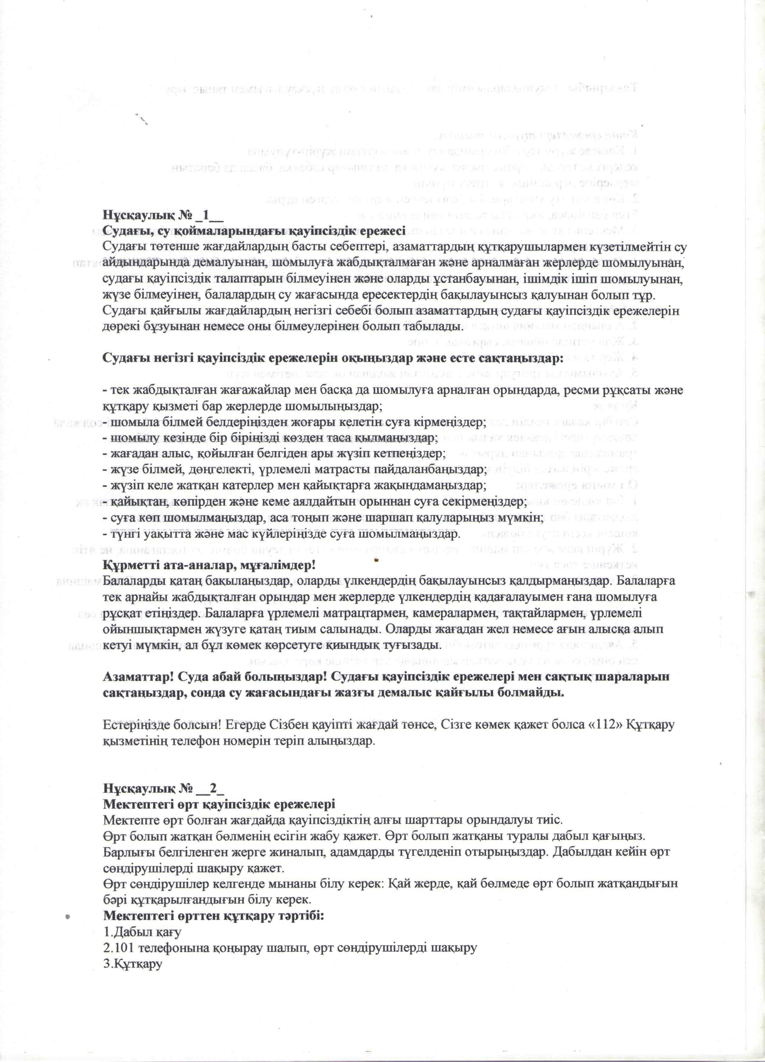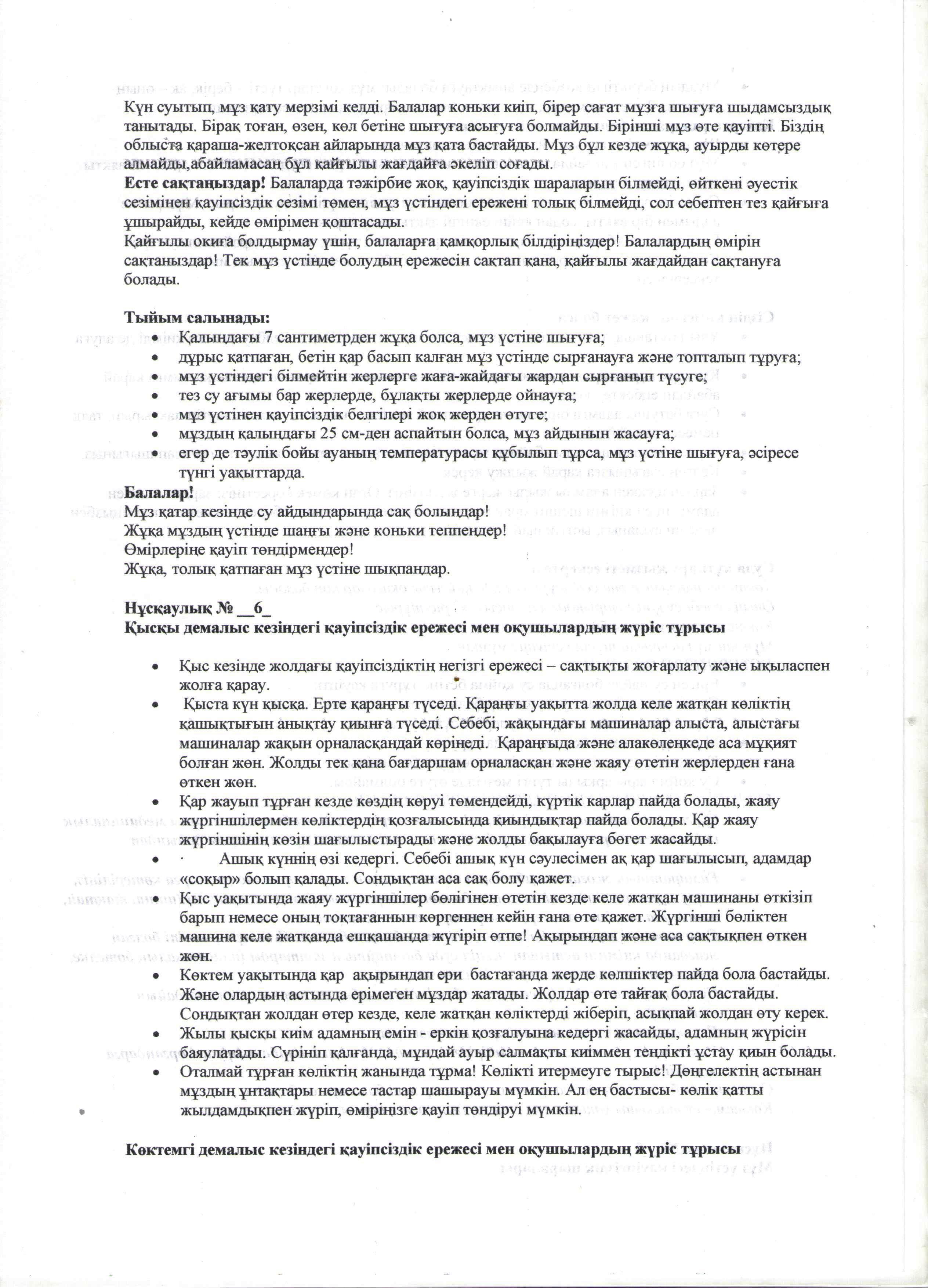 Оқушылардың өмір қауіпсіздігін сақтау нұсқаулығымен таныстыру