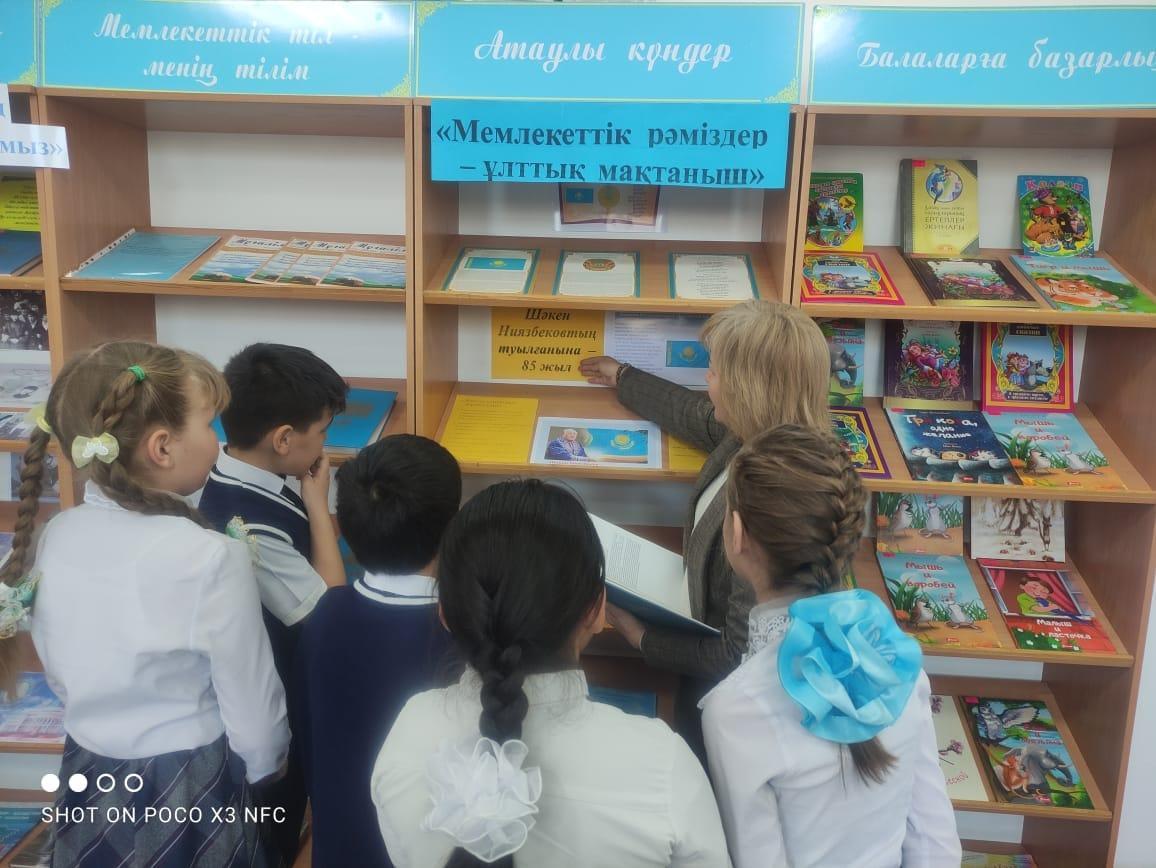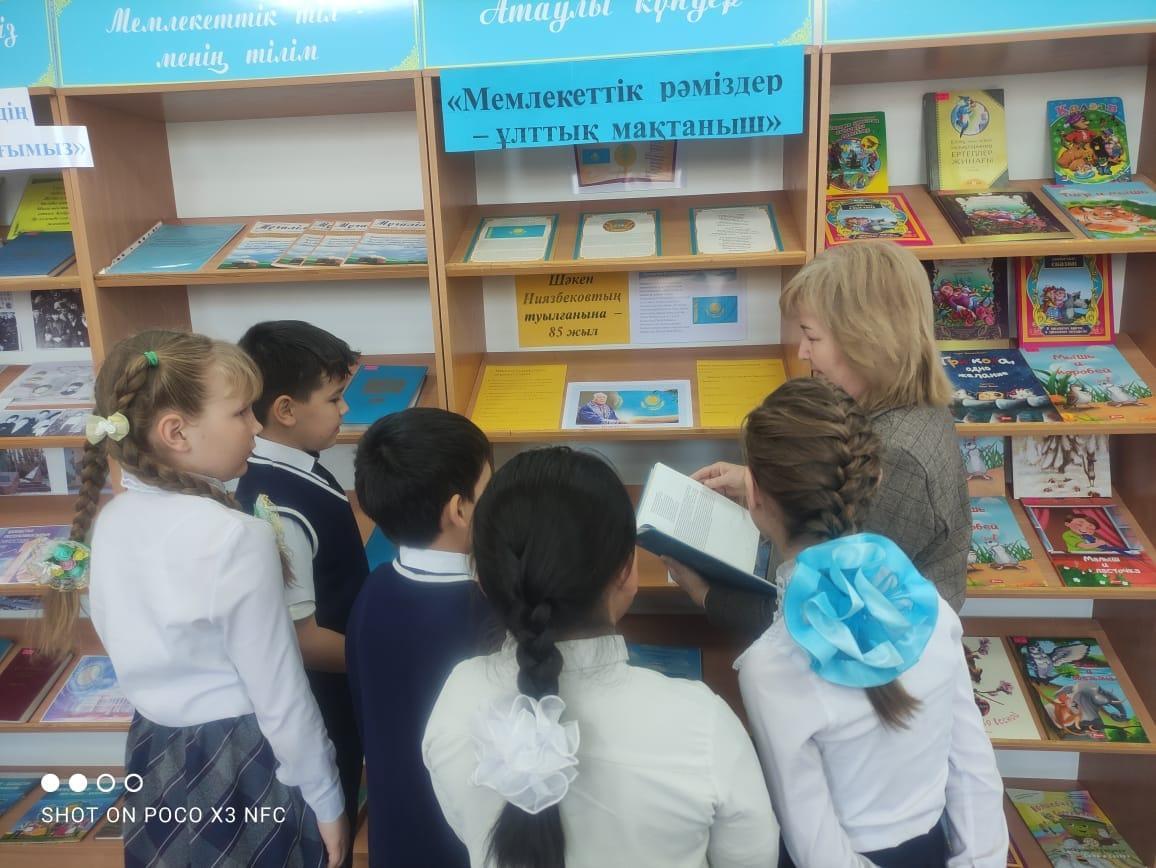 Тұрар Рысқұлов атындағы орта мектебінің кітапханасында мемлекеттік Тудың авторы Ш.Ниязбековтың туылғанына 85 жыл толуына орай көрме ұйымдастырылды