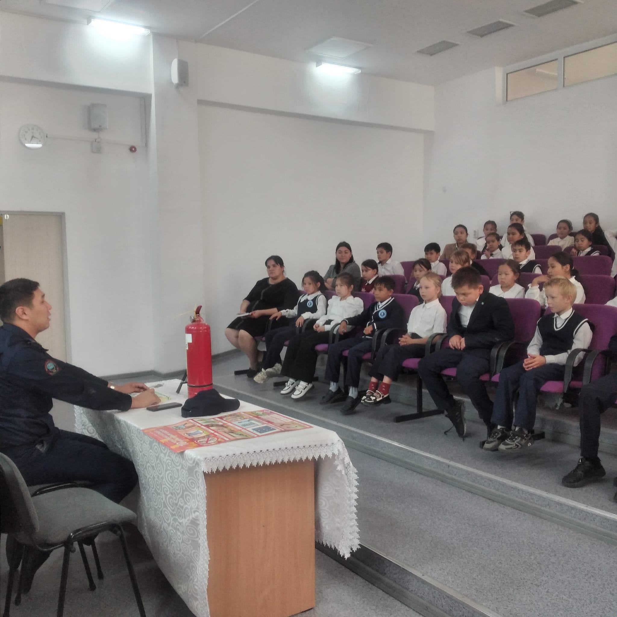 Тұрар Рысқұлов атындағы орта мектебінде қауіпсіздікті қамтамасыз ету мақсатында 4-5 сынып оқушылары арасында Шу ауданы Төтенше жағдайлар бөлімі қызметкері Пермебаев Марлен Берікбайұлы Түрлі Төтенше жағдайлар кезінде оқушылардың іс қимылдары тақырыбында үгіт насихат жұмыстарын жүргізді.