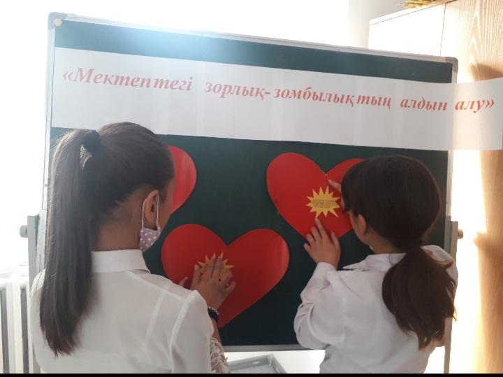 "Тәуекел" тобы оқушыларымен мектеп психологтары "Мектептегі зорлық-зомбылықтың алдын алу" тақырыбында тренинг сабақ ұйымдастырып өткізді.