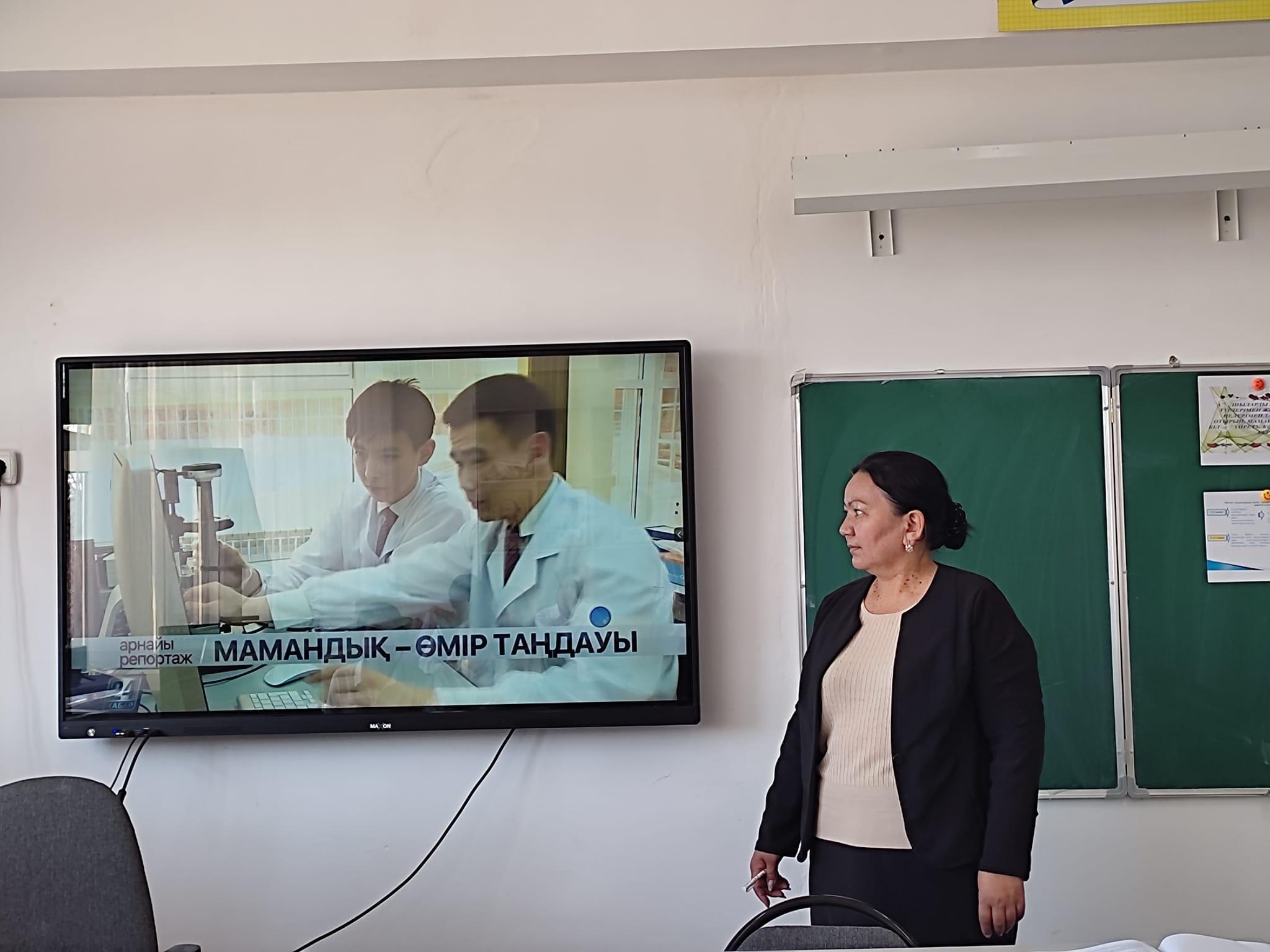 Шу қаласы Тұрар Рысқұлов атындағы орта мектебінде 2022-2023 оқу жылында 14 наурыз күні кәсіптік білім беру аясында кәсіптік бағдар педагогі Б.Джампеисова «Мамандық аукционы» тақырыбында тәрбие сағатын 9«В» сыныбында өткізді.Сабақта білім алушылар «Мамандық-өмір таңдауы» видеоролик көріп, аукционға қатысты.Әр топ сұранысқа ие болған мамандық бойынша сұрақтарға жауап берді, таңдаған фотосуреттегі мамандарға сипаттама беріп, ситуациялық сұрақтарға өз ойларымен бөлісті.Сабақ өте қызықты өтті.