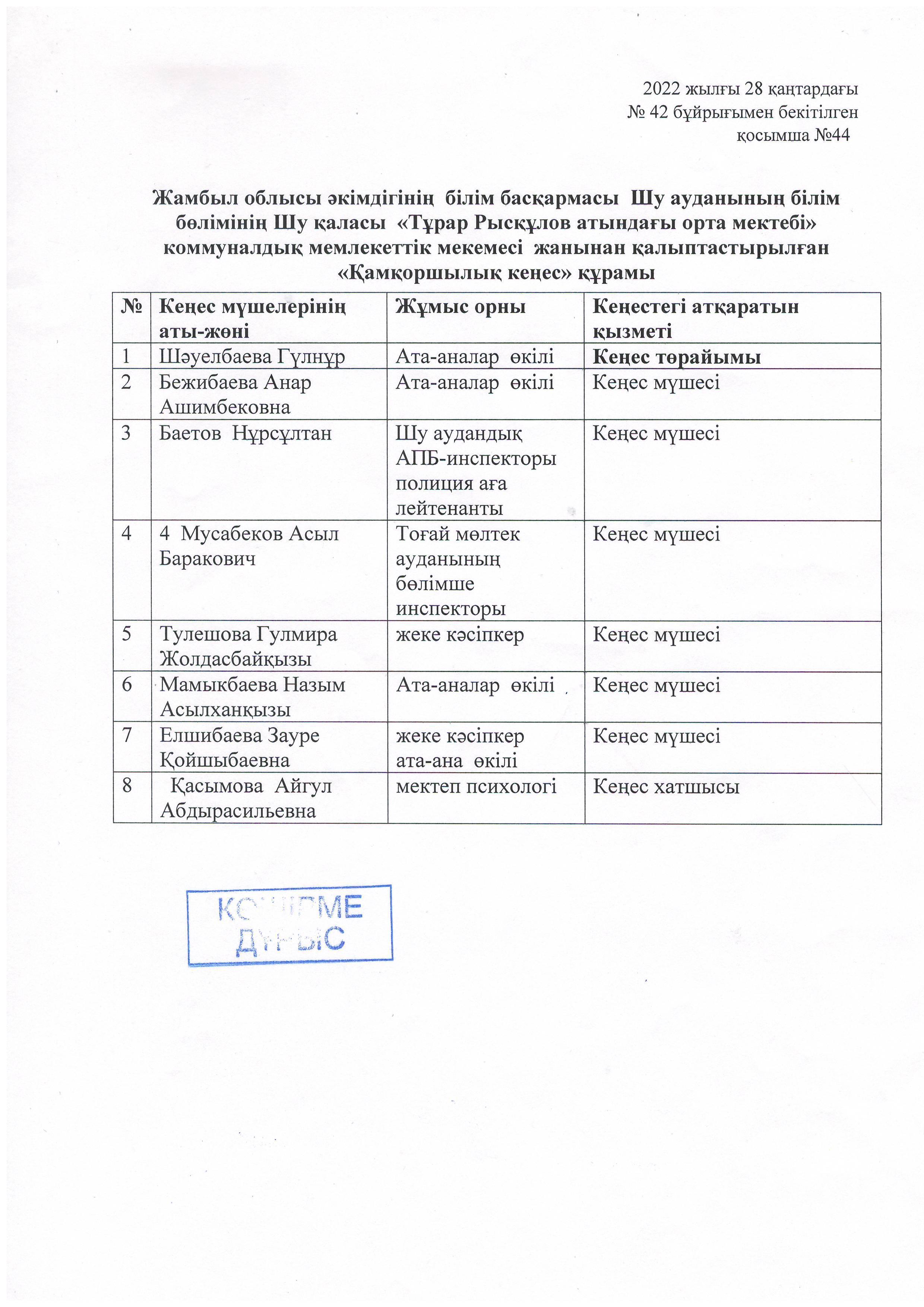 Қамқошылық кеңесінің құрамы » Тұрара Рысқұлов атындағы орта мектеп