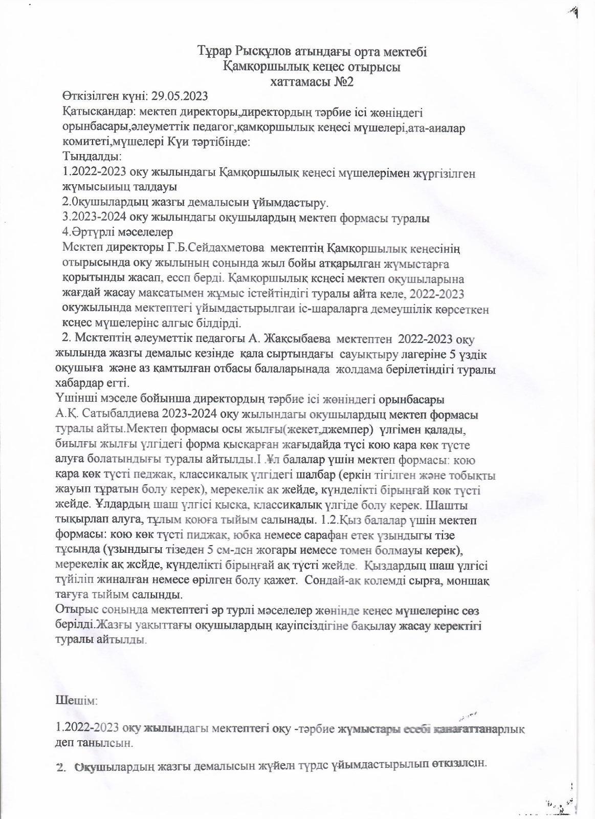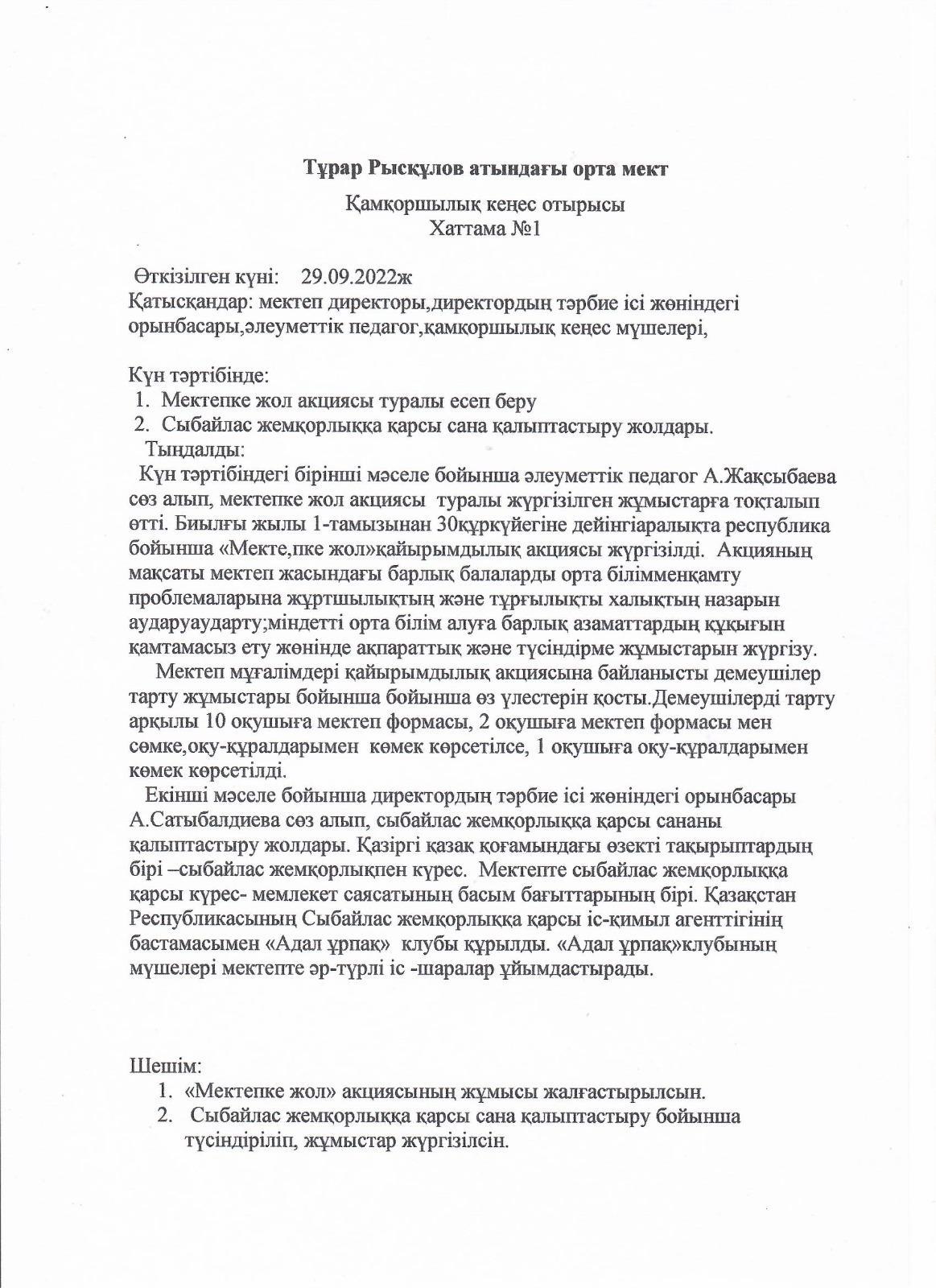 Қамқорлық кеңес » Тұрара Рысқұлов атындағы орта мектеп
