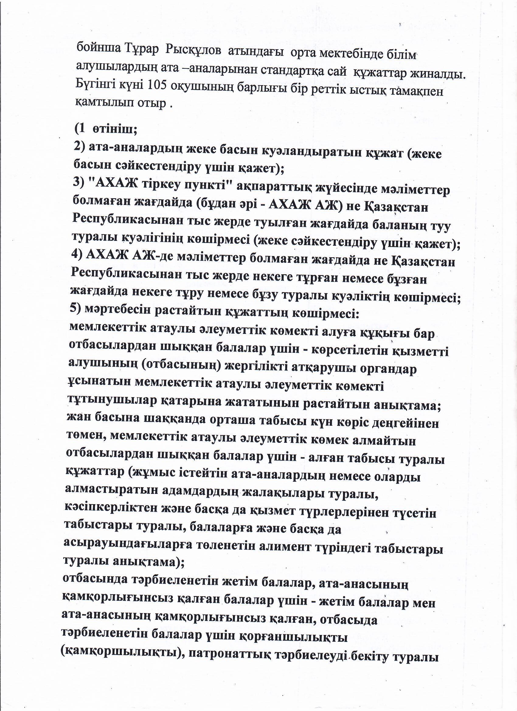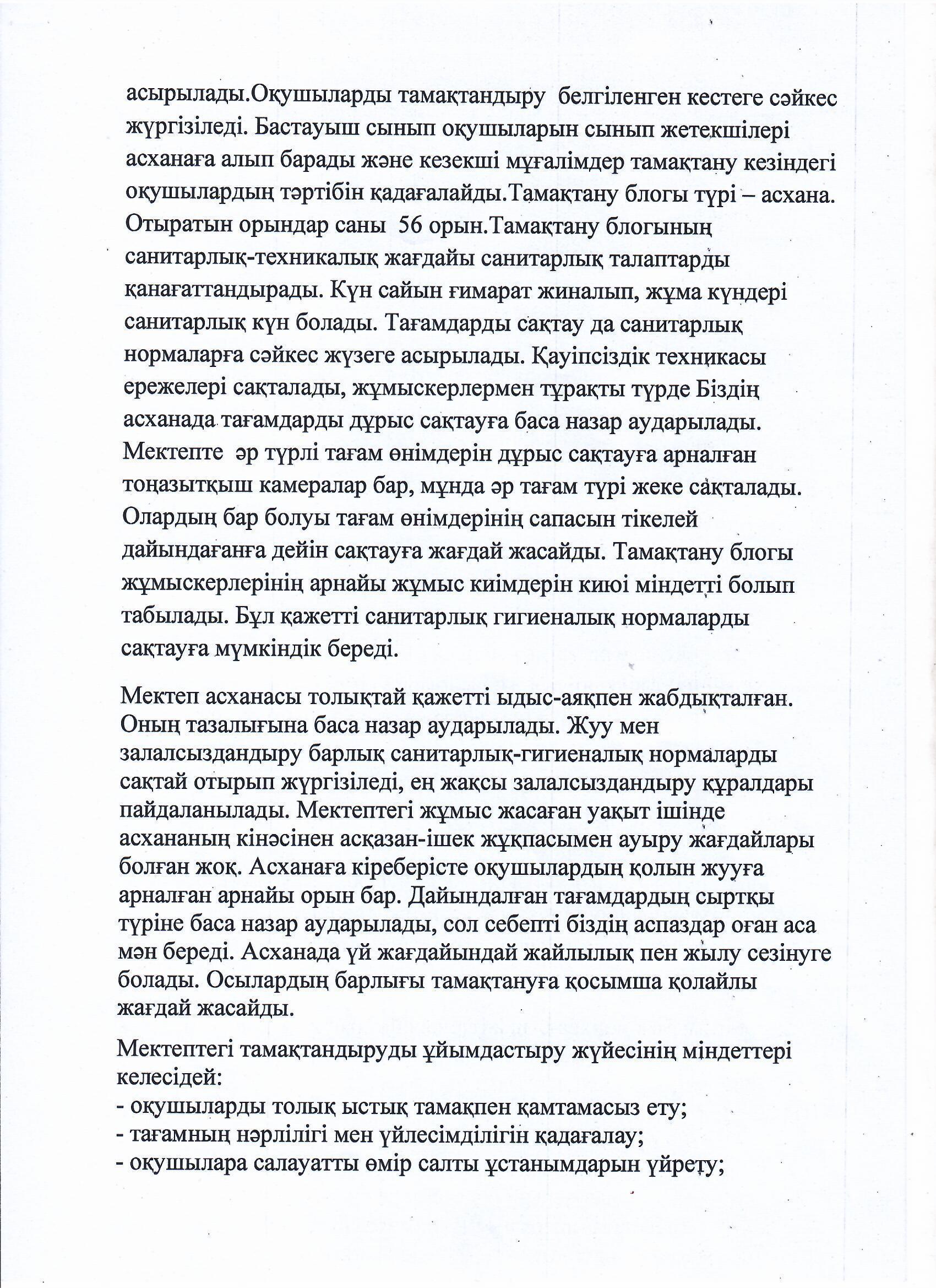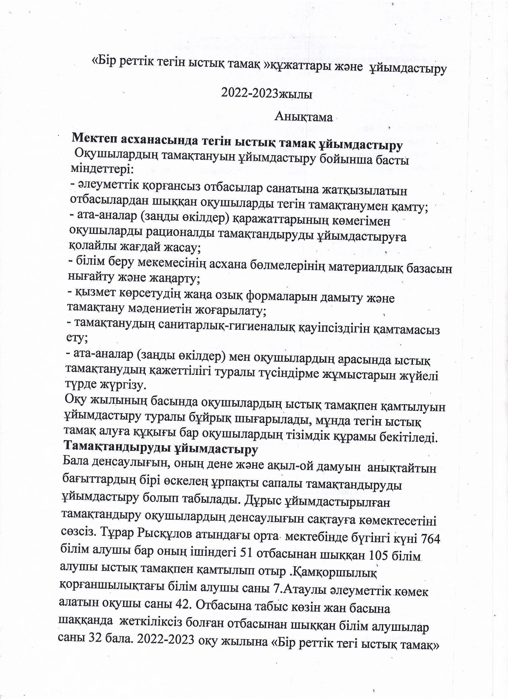 "Бір реттік ыстық тамақ" құжаттары және ұйымдастыру туралы анықтама » Тұрара Рысқұлов атындағы орта мектеп