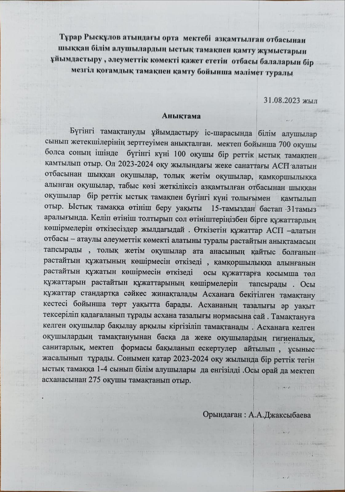 Анықтама » Тұрара Рысқұлов атындағы орта мектеп