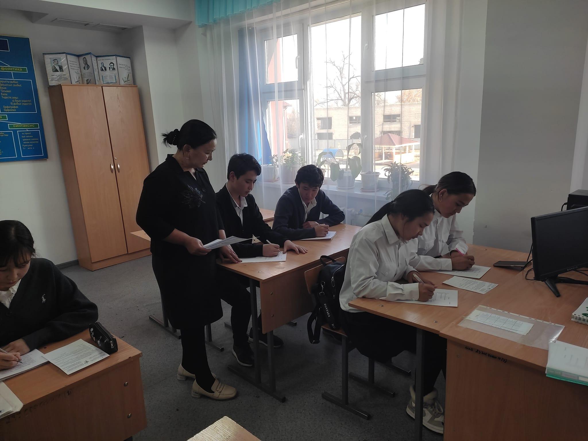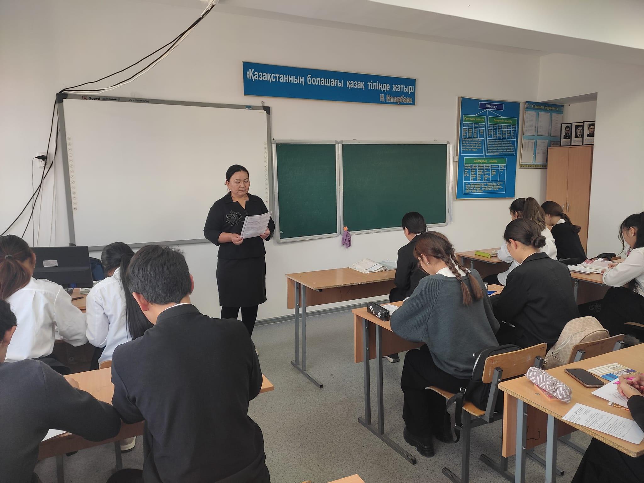 Шу қаласы Тұрар Рысқұлов атындағы орта мектебінде 2023-2024 оқу жылындағы кәсіптік бағдар беру жұмысының іс-шаралар бойынша 23 қараша күні «Кім боламын?» тақырыбында 10 сыныптар арасында кәсіптік бағдар педагогі Б.Джампеисова сауалнама жүргізді. Сауалнамада білім алушылар өз таңдаған мамандықтарын жазып, қандай кәсіп қызықтыратыны туралы белгіледі.