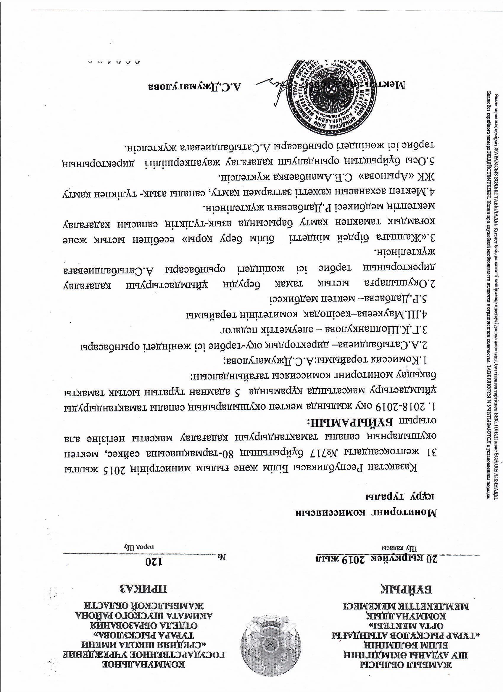 отдела образования Кербулакского района